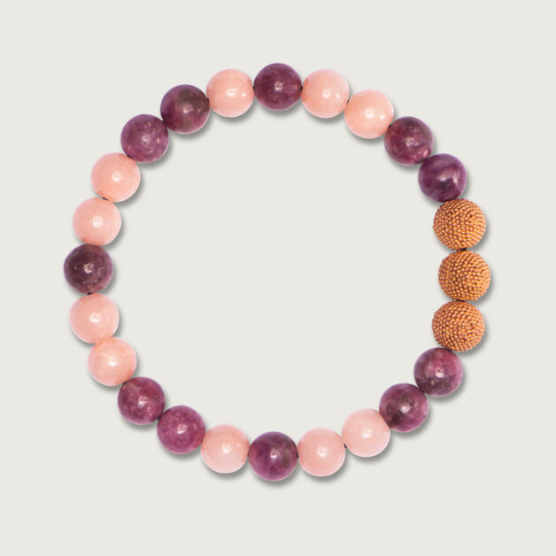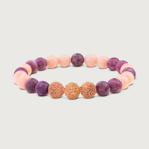 18k Roségold Vermeil mit rosa Jade & Lepidolith Ø 8mm