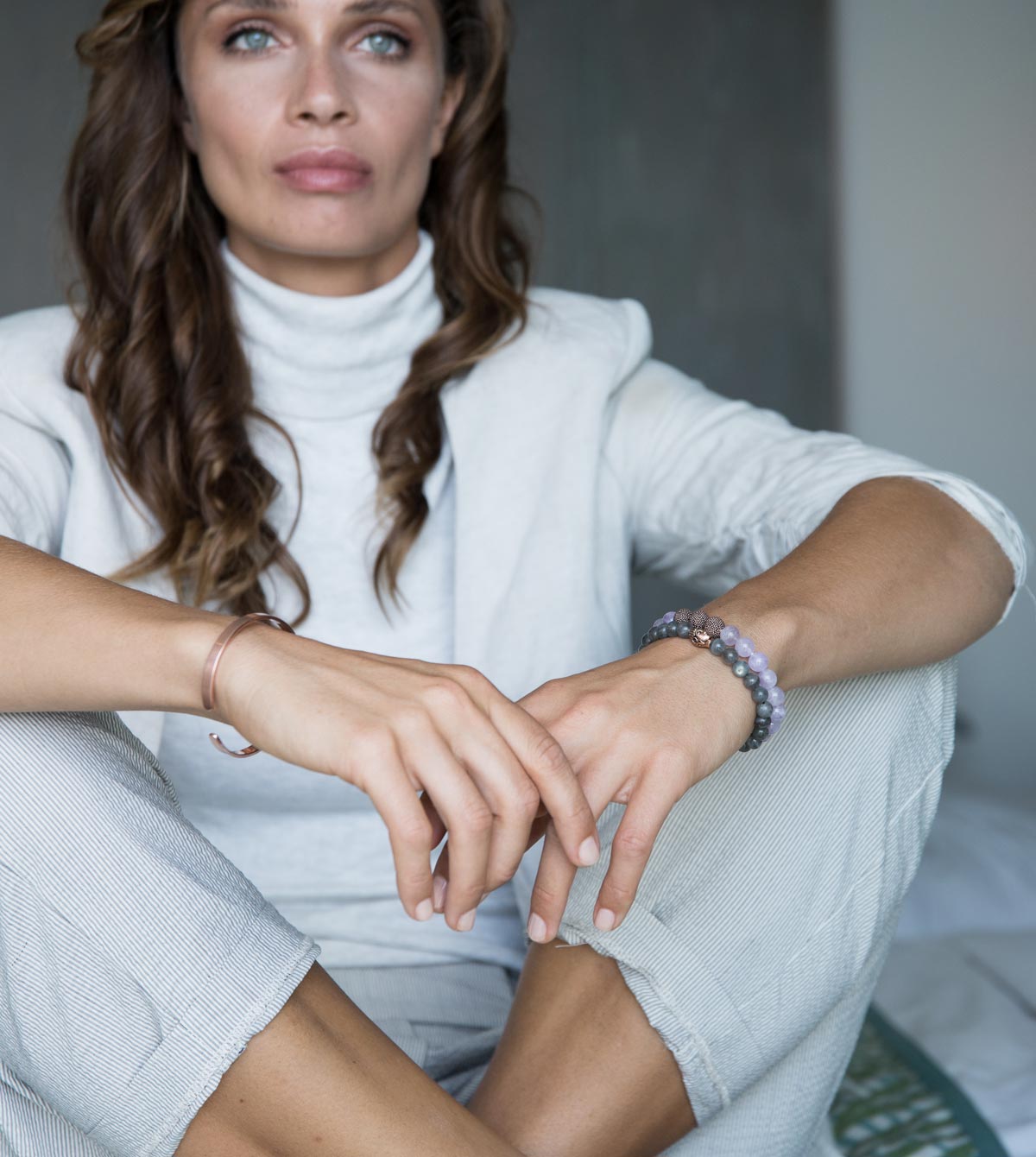 Alle Armbänder werden auf einem Stretchband aufgefädelt und gleiten so mühelos über Deine Hand. Wir empfehlen beim An- und Ablegen das Armband über den Handrücken zu rollen.