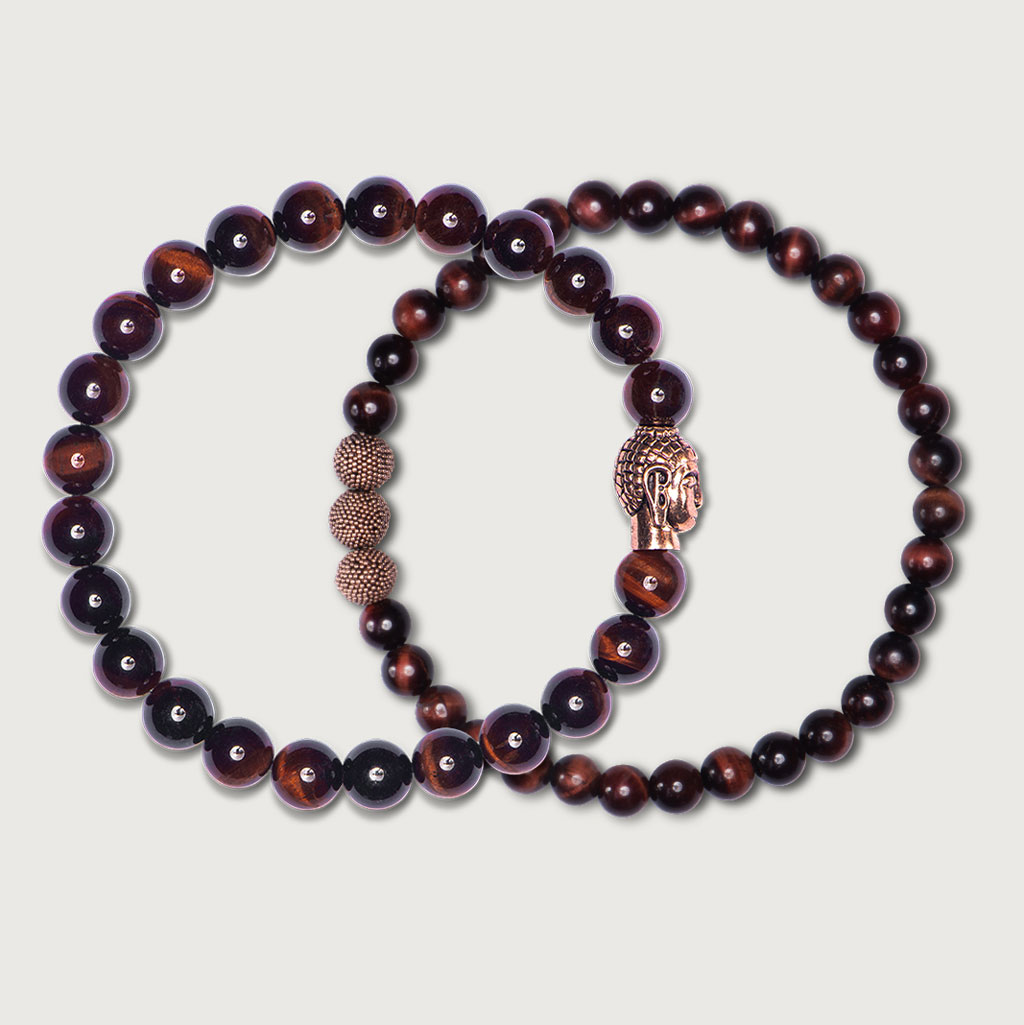Eine perfekte Symbiose aus lehmrot-changierendem roten Tigerauge in 8 mm mit Roségold vergoldetem Buddha verleihen diesem Damenarmband schlichte Eleganz und stilvolle Klarheit. Zeitlos schön & passend zu fast jedem Outfit.