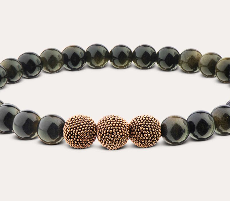 Elegant und zeitlos ist die Komposition dieses Damenarmbands für den modebewussten Alltag aus Goldobsidian in 6 mm, edel abgerundet mit in Roségold vergoldeten & mattierten Silberperlen für ein stilvolles Highlight - passend zu fast jedem Outfit.