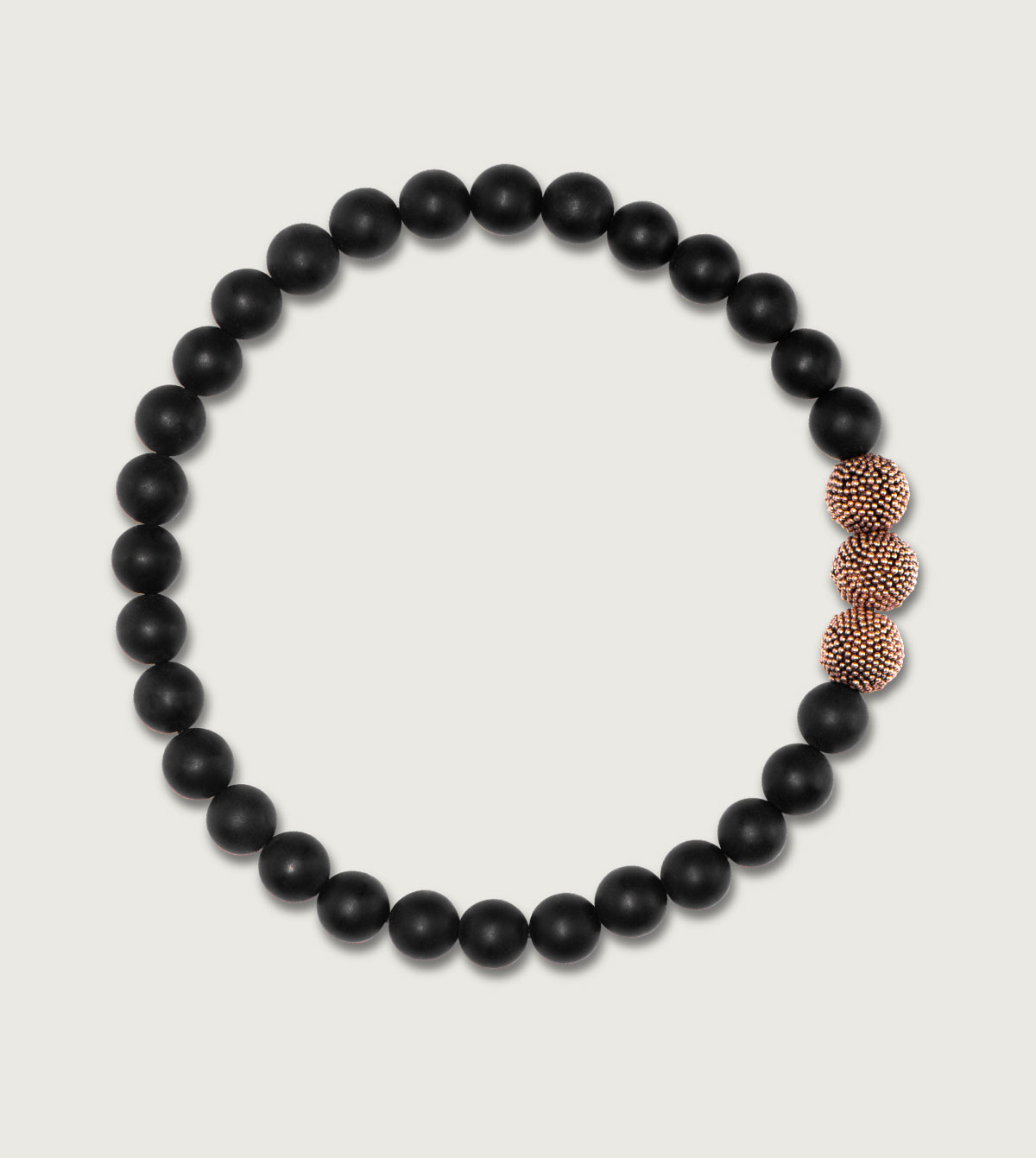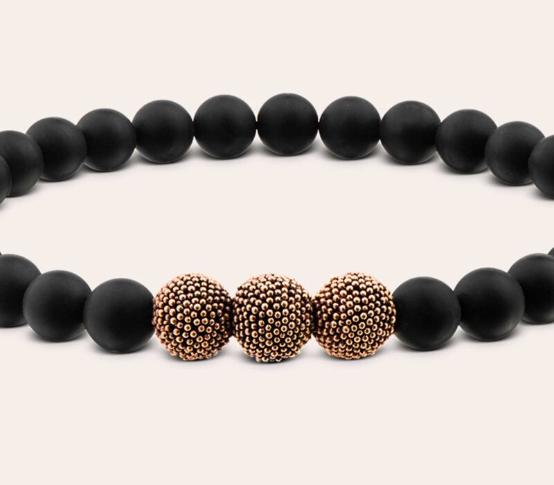 Minimalistisch & einfach schön wirkt dieser Mix aus mattem Onyx in 6 mm und den in Roségold vergoldeten Silberperlen. Ein Damenarmband geschaffen für den eleganten wie auch legeren Alltag als dezenter Blickfang am Handgelenk.