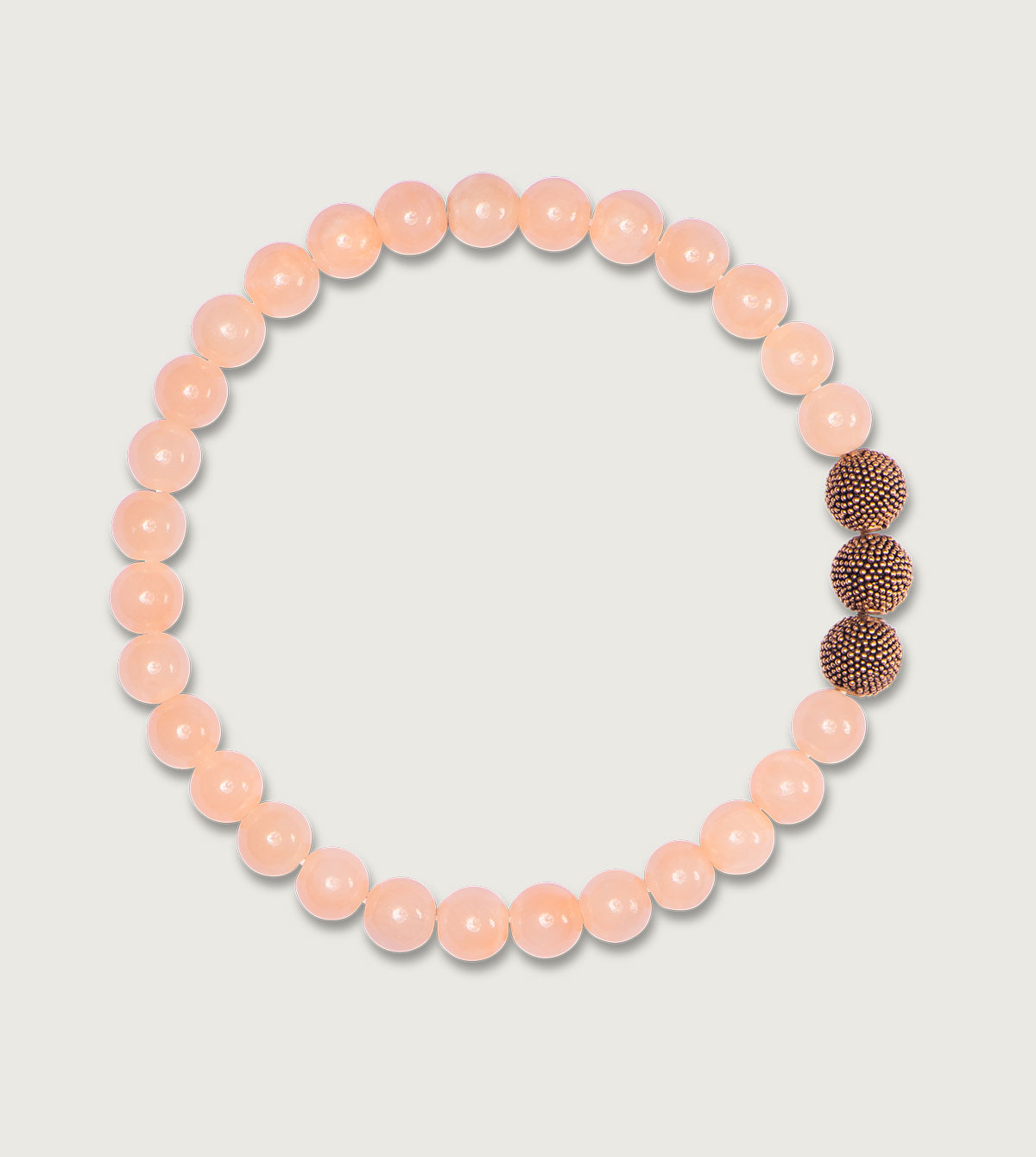 Die handgefertigten Jawan Beads aus 925er Sterlingsilber entstehen traditionell nach einer Jahrhunderte alten Silberschmiedekunst, bei der winzigste Kügelchen auf eine handgearbeitete Kugel aufgetragen werden. Traditionelles Handwerk und Hingabe verleihen den Beads so ihren einzigartigen Charakter. Gold hat auf Bali eine spirituelle Bedeutung, da es ein Geschenk aus dem Herzen der Erde ist. Daher haben wir die Beads passend zur Jade mit einer stylischen Vergoldung in 18 kt Roségold und edlem Matteffekt stilvoll abgerundet.
