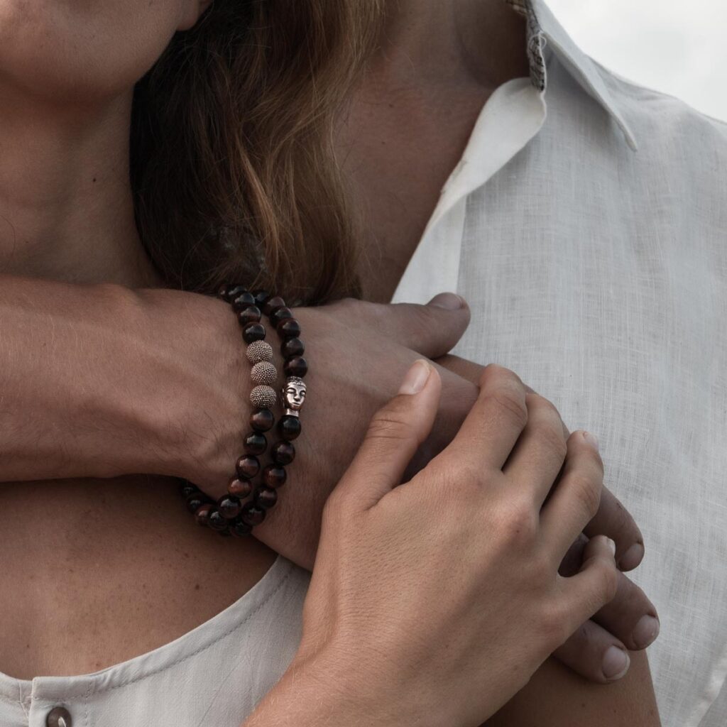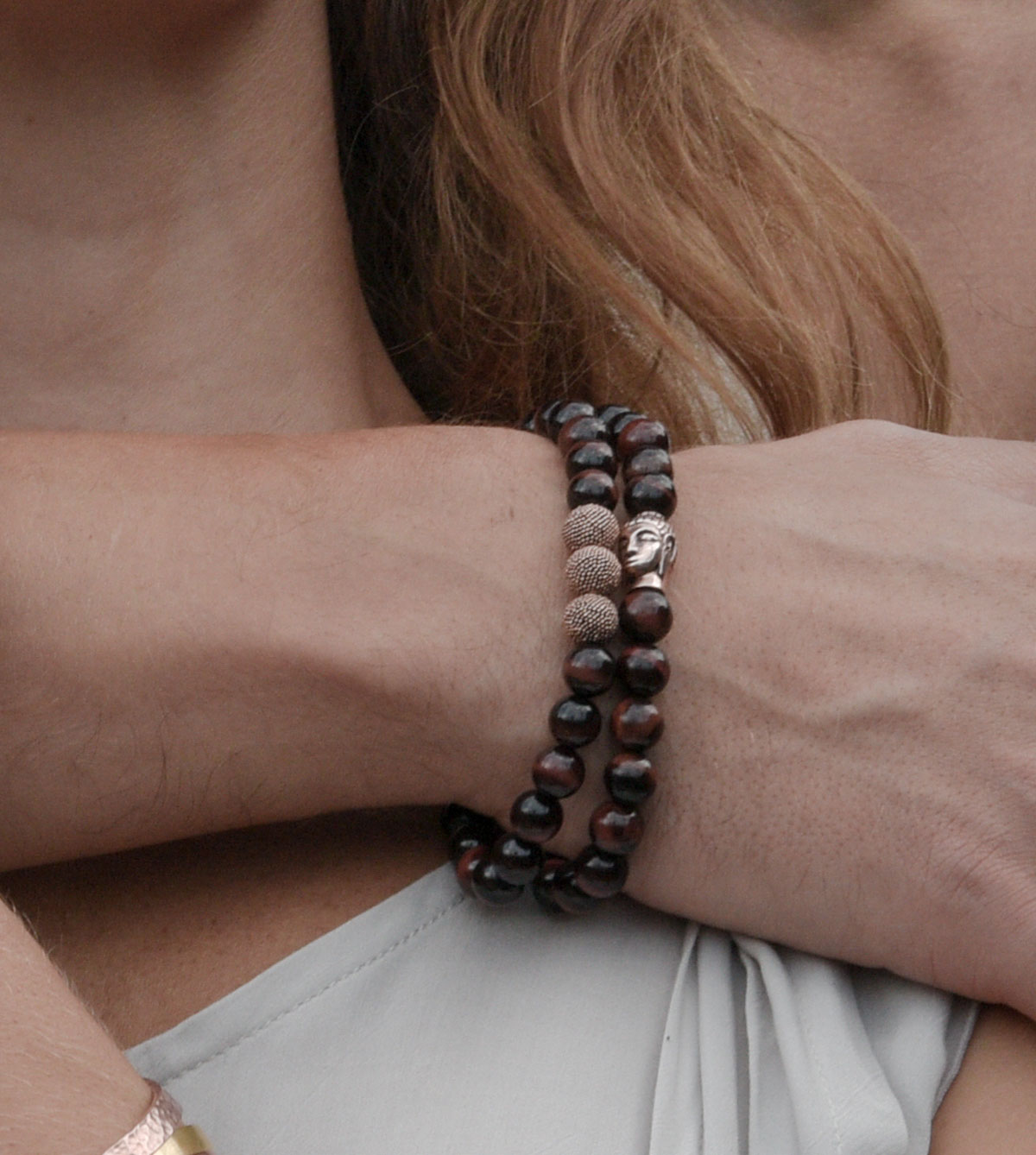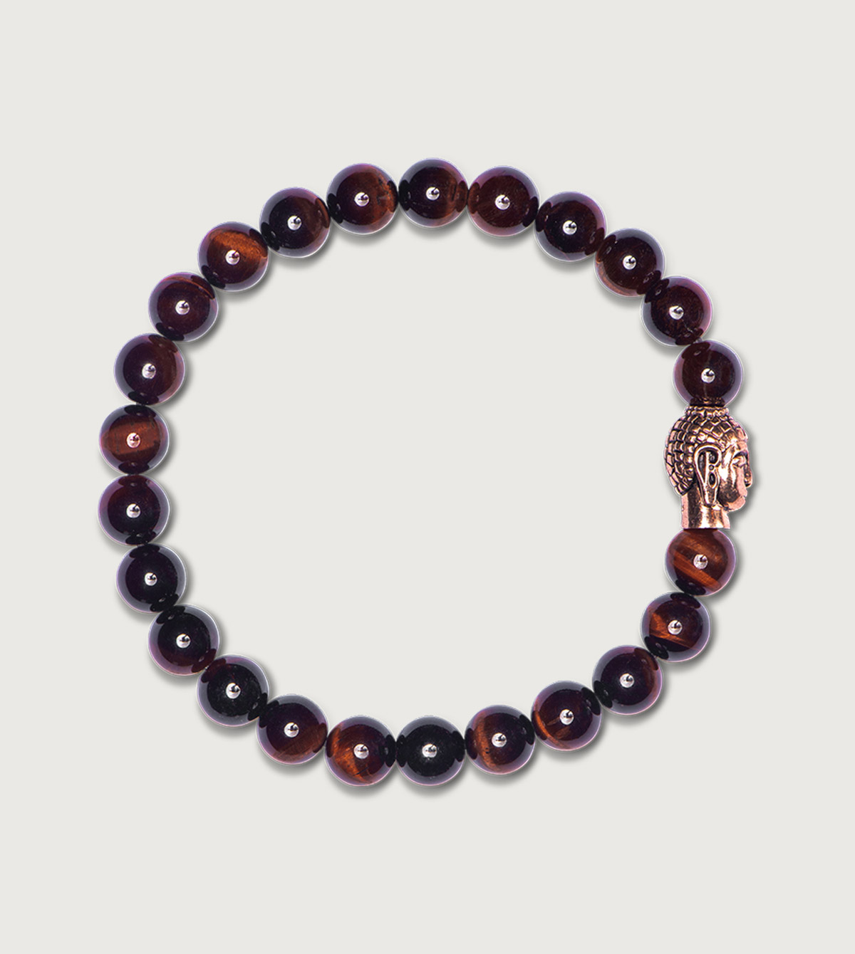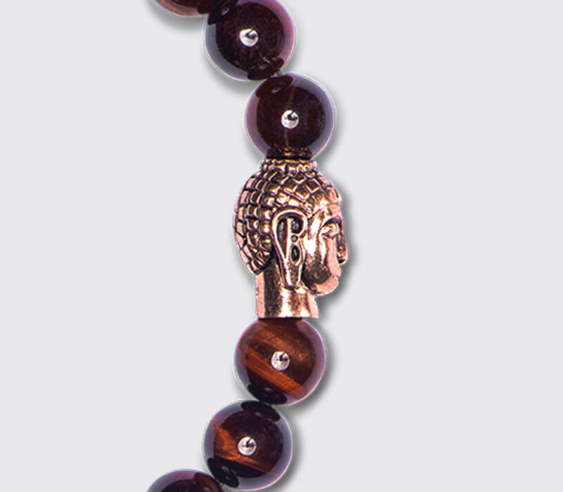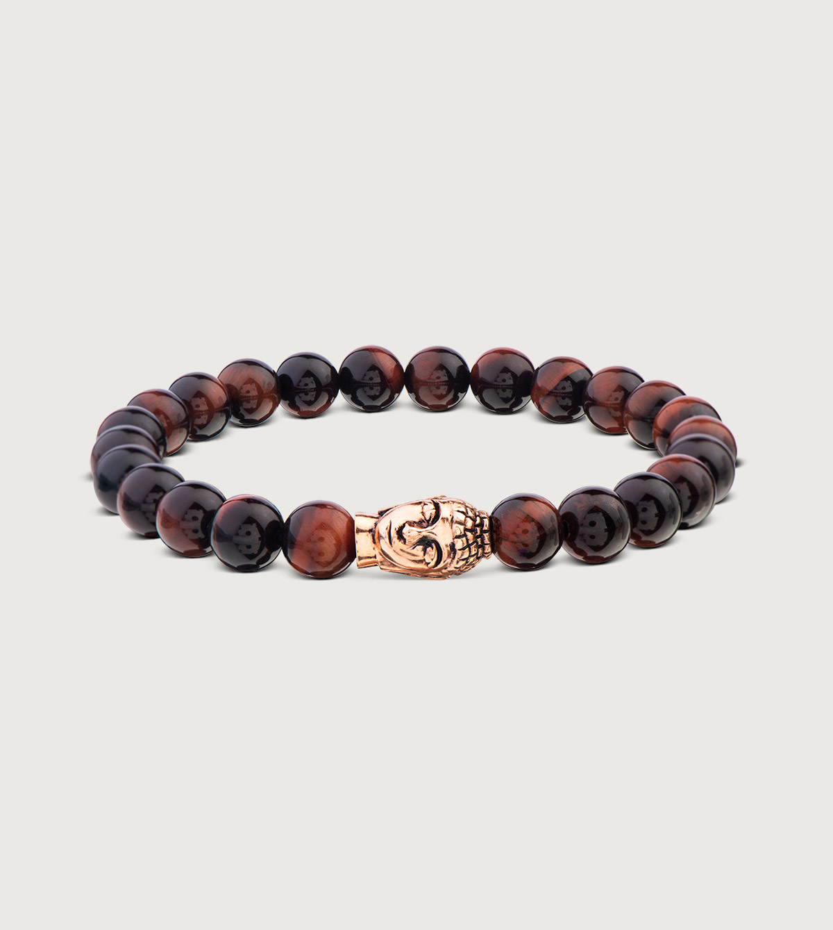 Eine perfekte Symbiose aus lehmrot-changierendem roten Tigerauge in 8 mm mit Roségold vergoldetem Buddha verleihen diesem Herrenarmband schlichte Eleganz und stilvolle Klarheit - zeitlos schön & passend zu fast jedem Outfit.