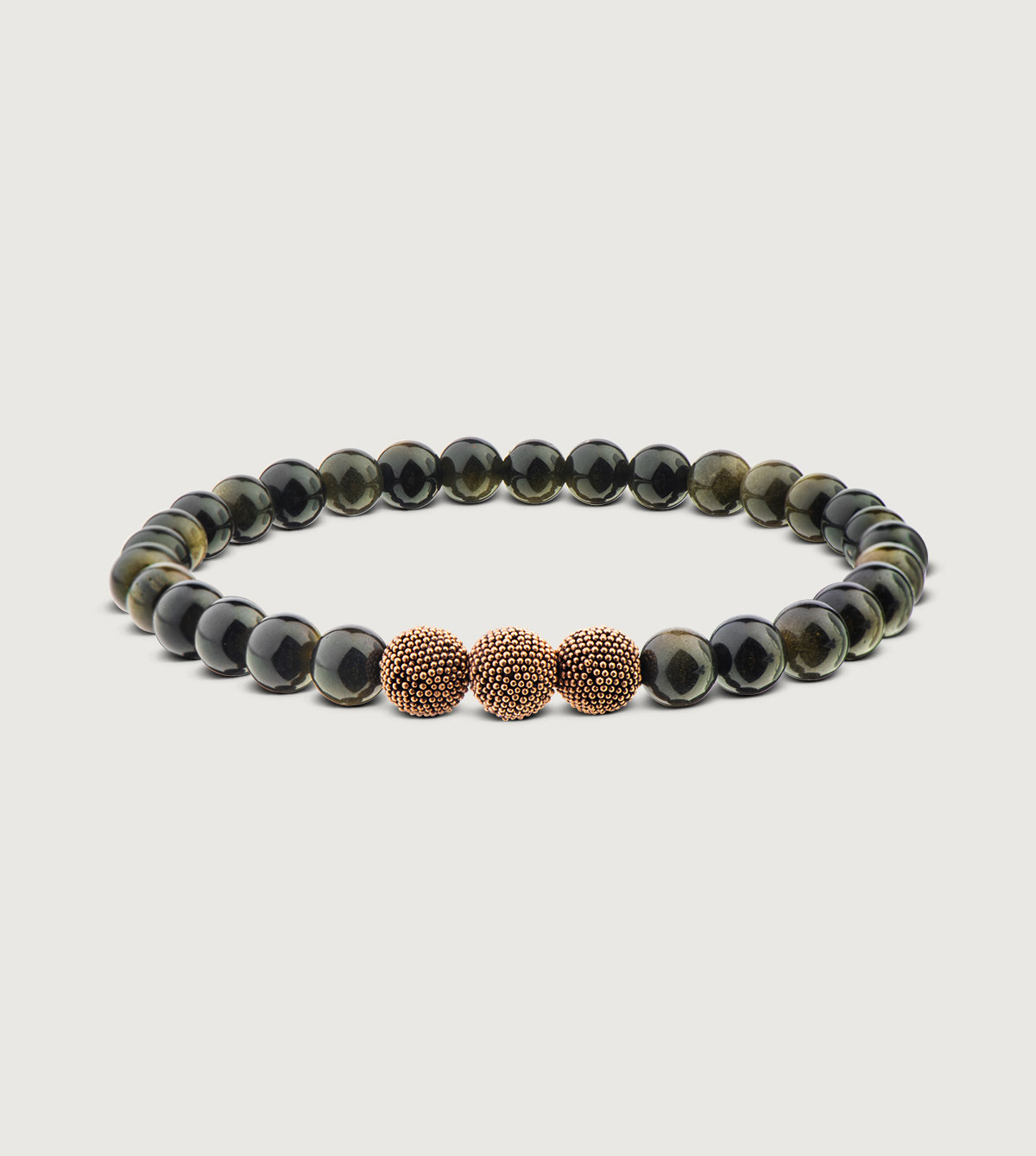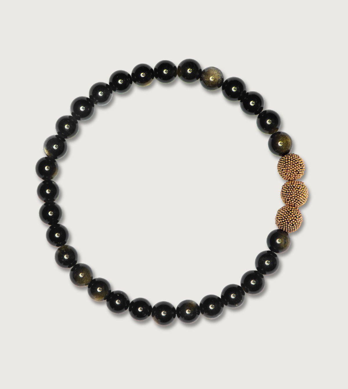 Edel und zeitlos ist die Komposition dieses Armbands für einen eleganten Alltag aus Goldobsidian in 6 mm, abgerundet mit in Roségold vergoldeten & mattierten Silberperlen für ein stilvolles Highlight - passend zu fast jedem Outfit.