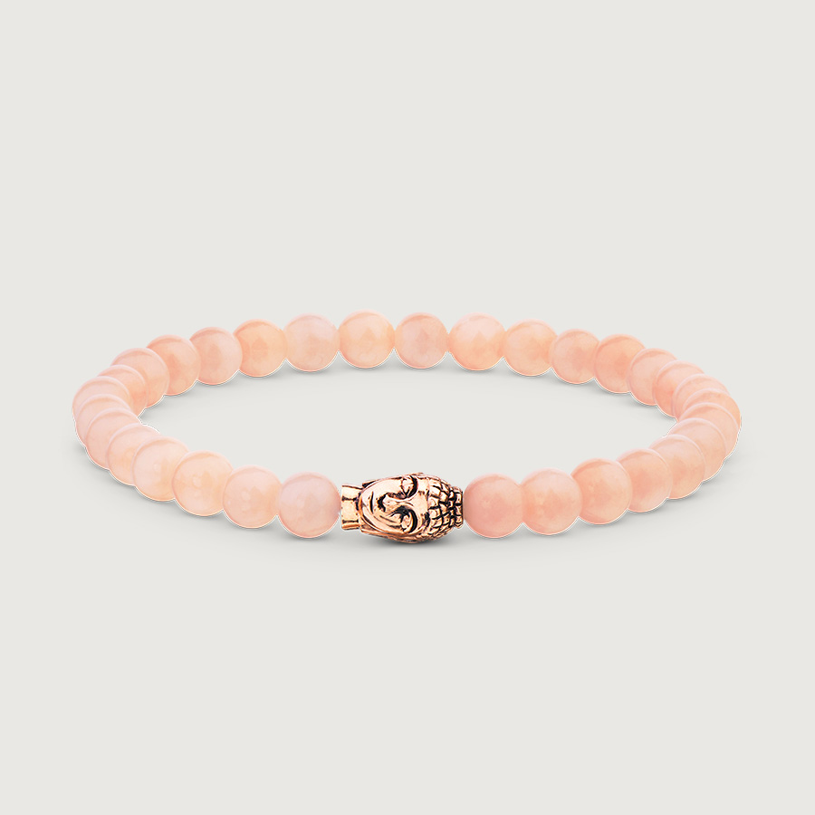 18k Roségold Vermeil Perlen & Buddha mit rosa Mondstein & rosa Jade Ø 6mm