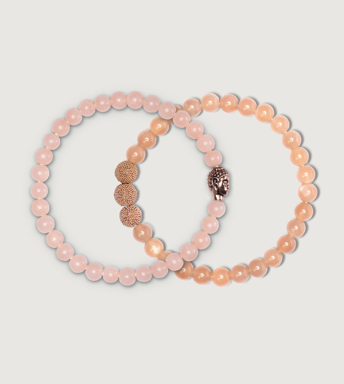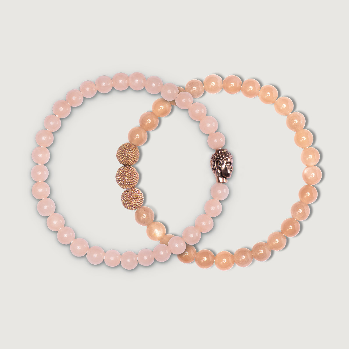 Dieses Set ist weit mehr als ein modisches Accessoire – es bietet Dir tägliche Unterstützung für innere Ruhe & positive Ausstrahlung. Die zarten Farbtöne der rosa Jade fördern Gelassenheit & Selbstakzeptanz, während der strahlende rosa Mondstein Vitalität und Lebensfreude in Dein Leben bringt. Dieses Set passt sich harmonisch Deinem Stil an und verleiht jedem Look eine ebenso sanfte wie energetische Note.