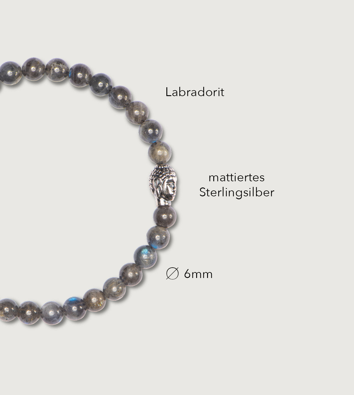 Sterlingsilber Perlen & Buddha mit Labradorit & Goldobsidian Ø 6 & 8mm