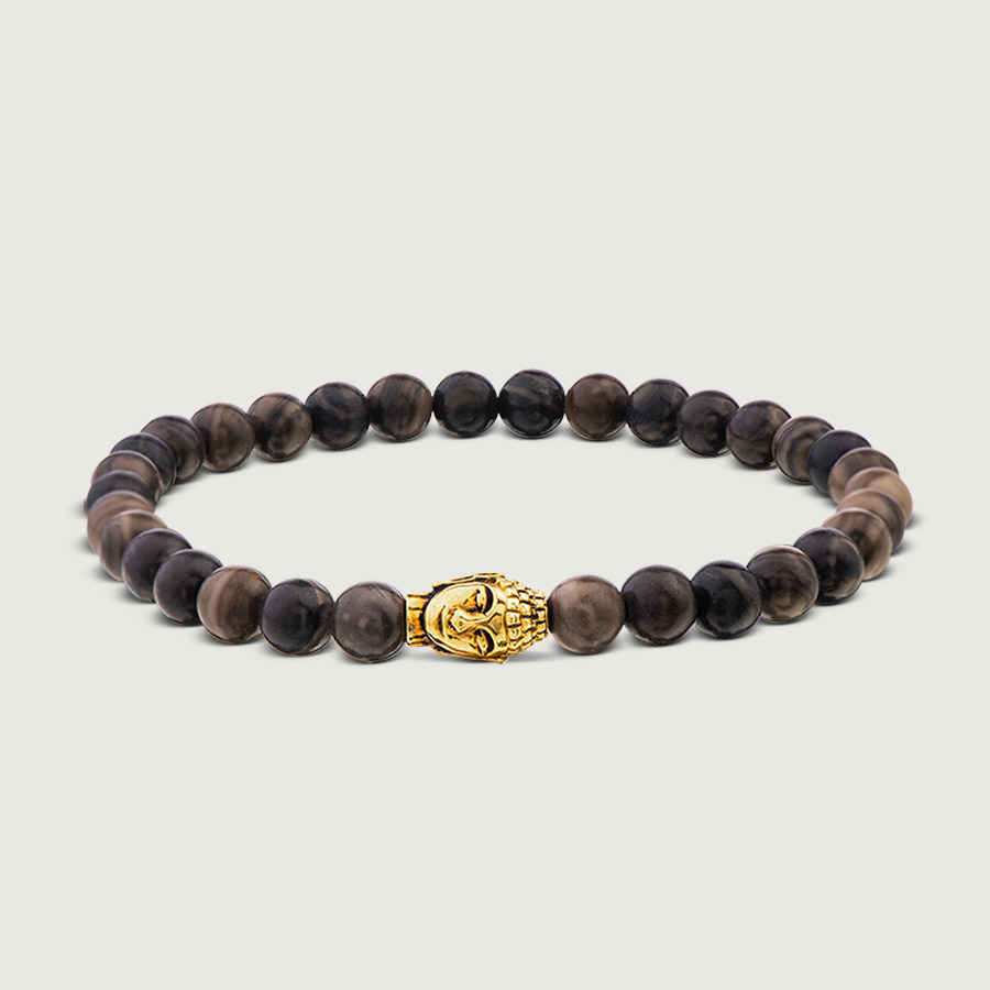 18k Gold Vermeil Perlen & Buddha mit Magnesit & Bronzit Ø 6 & 8mm
