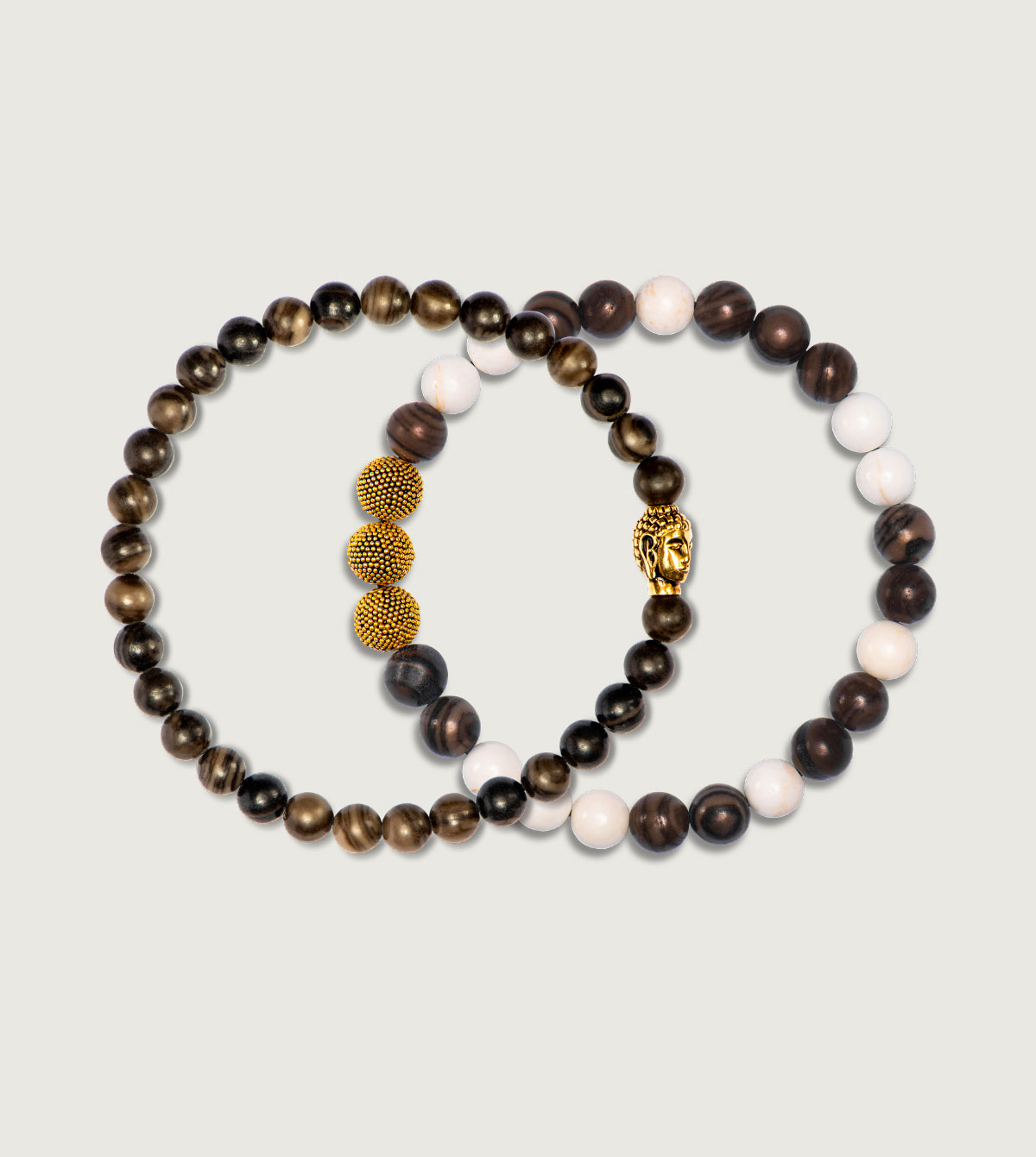 Die 925er Silberperlen sowie der Buddha, beide in 24kt vergoldet, verleihen dem Set eine markante, zeitlose Eleganz und sorgen für ein langlebiges und hochwertiges Design. Jedes Detail ist präzise verarbeitet und trägt die Energie der balinesischen Kultur, was dieses Set zu einem einzigartigen und authentischen Begleiter macht.