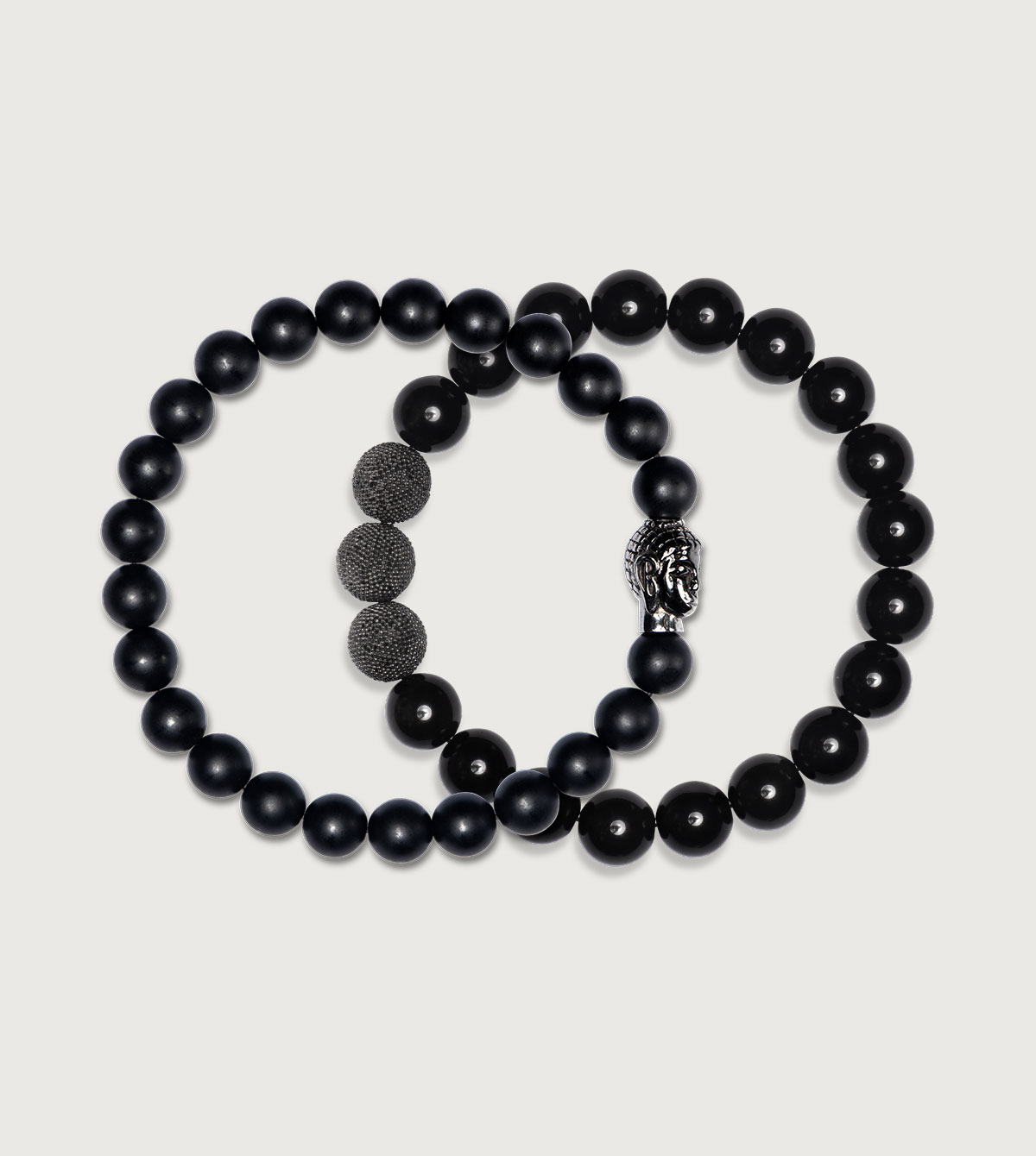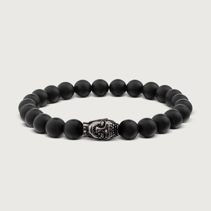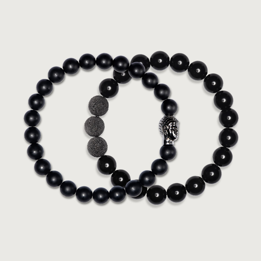 Sterlingsilber Perlen & Buddha geschwärzt mit Obsidian & Onyx matt Ø 10 & 8mm