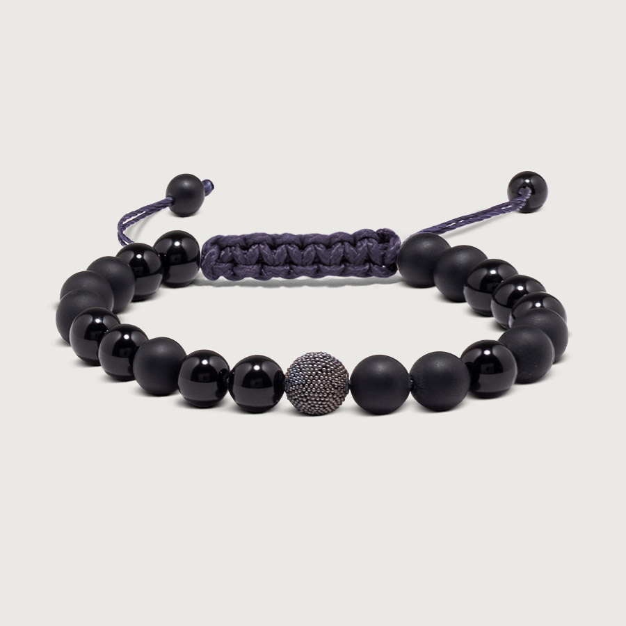 Das Armband hat ausserdem einen leicht verstellbaren Verschluss für ein einfaches An- und Ablegen. In Handarbeit präzise geknüpfte Knoten erzeugen ein harmonisches Muster, um ein einzigartiges und langlebiges Schmuckstück zu schaffen. Dafür verwenden wir ein gewachstes Polyester Makrameegarn, absolut reißfest und farbecht. Elegantes Herren Armband mit Edelsteinperlen aus Onyx & geschwärzter Silberperle handmade in Bali für Deinen persönlichen Look von BALI BRACELETS. Entdecken die klassische Schönheit dieses Onyx Armbands in einer eleganten Kombination aus mattem & glänzendem Perlen, stilvoll betont durch eine geschwärzte Silberperle.