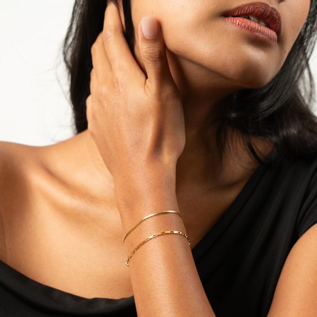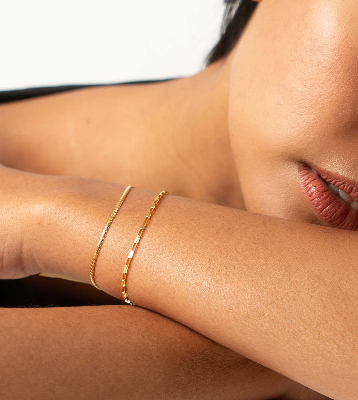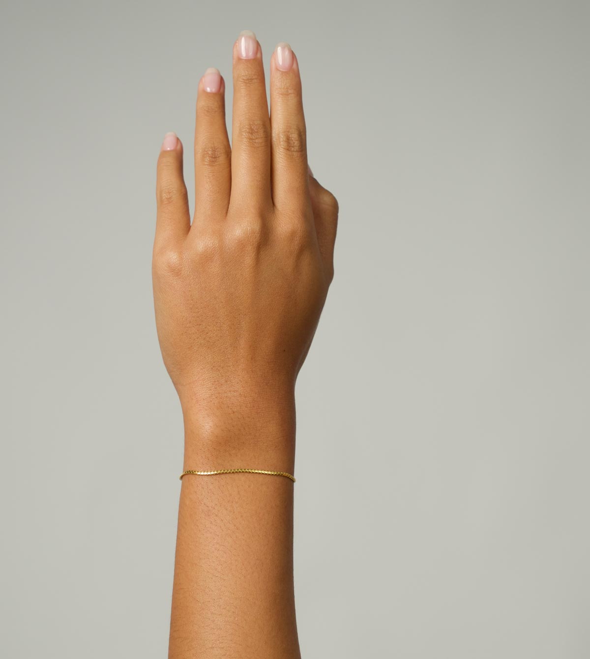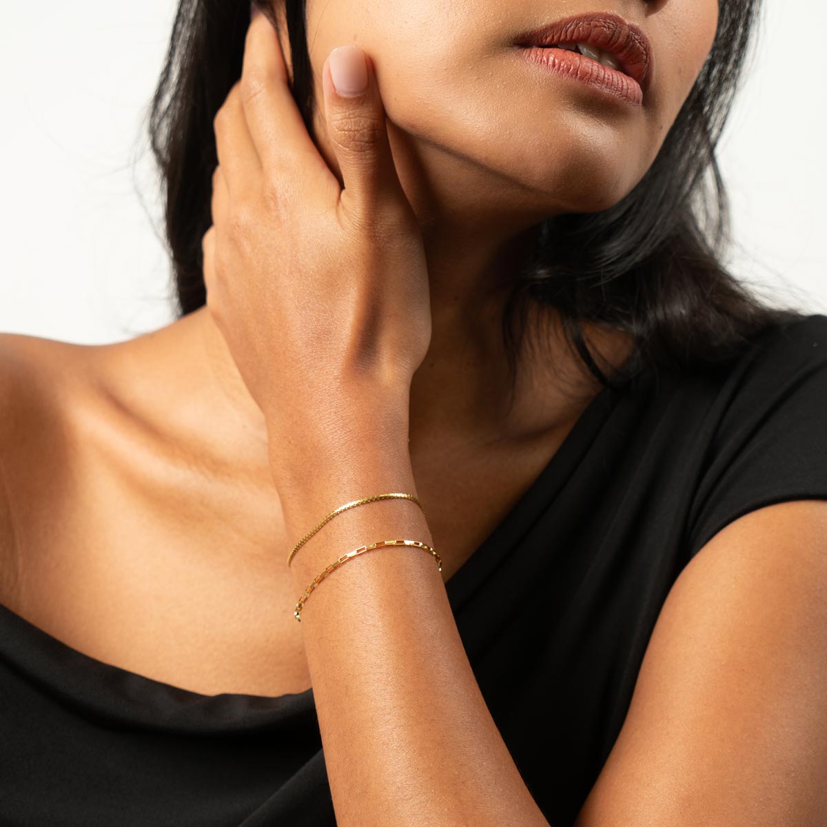 Unser Super Flat Armband vereint minimalistisches Design mit edlem 18 Karat Gold Vermeil. Seine flachen, feinen Glieder schmiegen sich elegant ans Handgelenk und reflektieren das Licht mit sanftem Glanz. Ein zeitloses Schmuckstück, das mühelos Eleganz und moderne Schlichtheit verbindet.