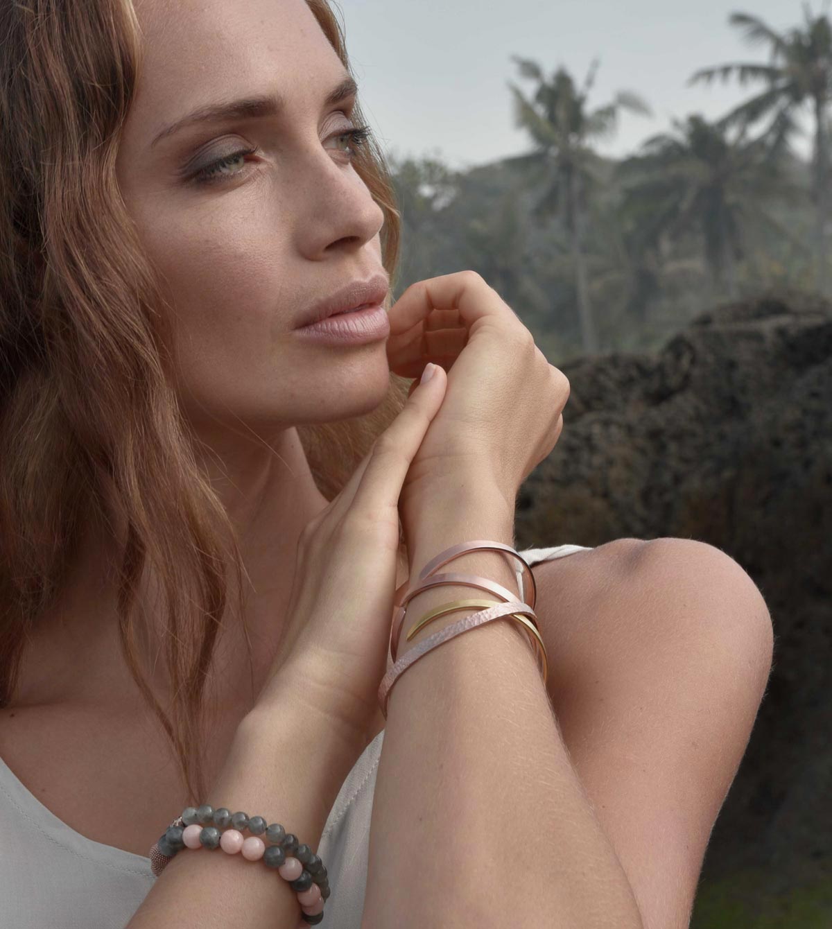 Reduktion auf das Wesentliche prägt unserer Armreif Kollektion aus 925 Sterlingsilber. Durch schlichte Formgebung und die hochwertige Vergoldung in 18 Karat Roségold getragen von balinesischer Handwerkskunst entsteht ein elegantes Statement für Deinen stilvollen Alltag.
