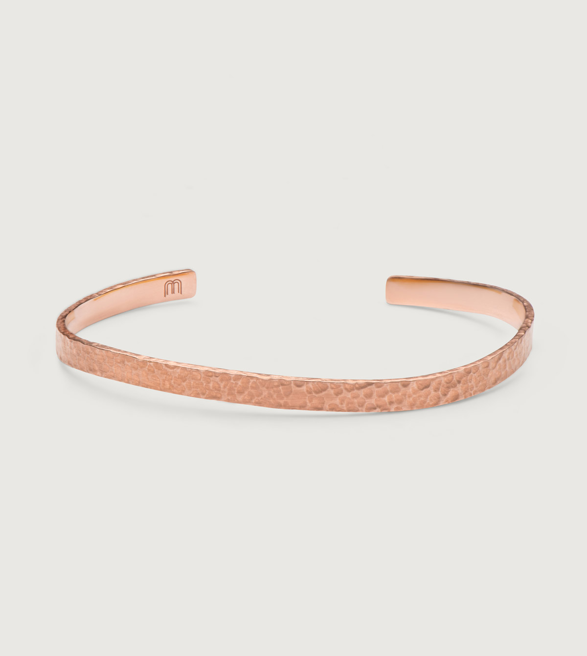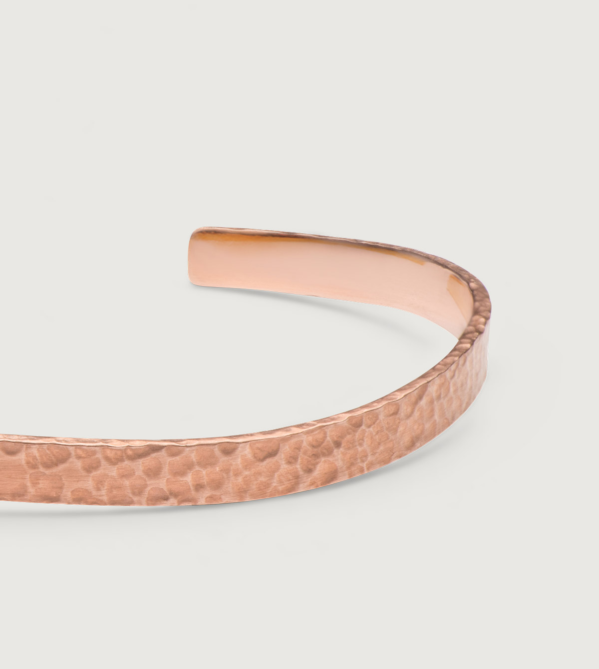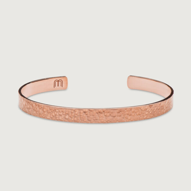 Die mattierte und gehämmert Oberfläche wurde nach traditioneller Technik von Hand beschlagen und gebürstet, was dem Armreif einen lebendigen Eindruck verleiht. Mit ca. 4,5 mm Breite kannst Du ihn einzeln oder im stylischen Layering-Look mit anderen Armreifen & Armbändern tragen.