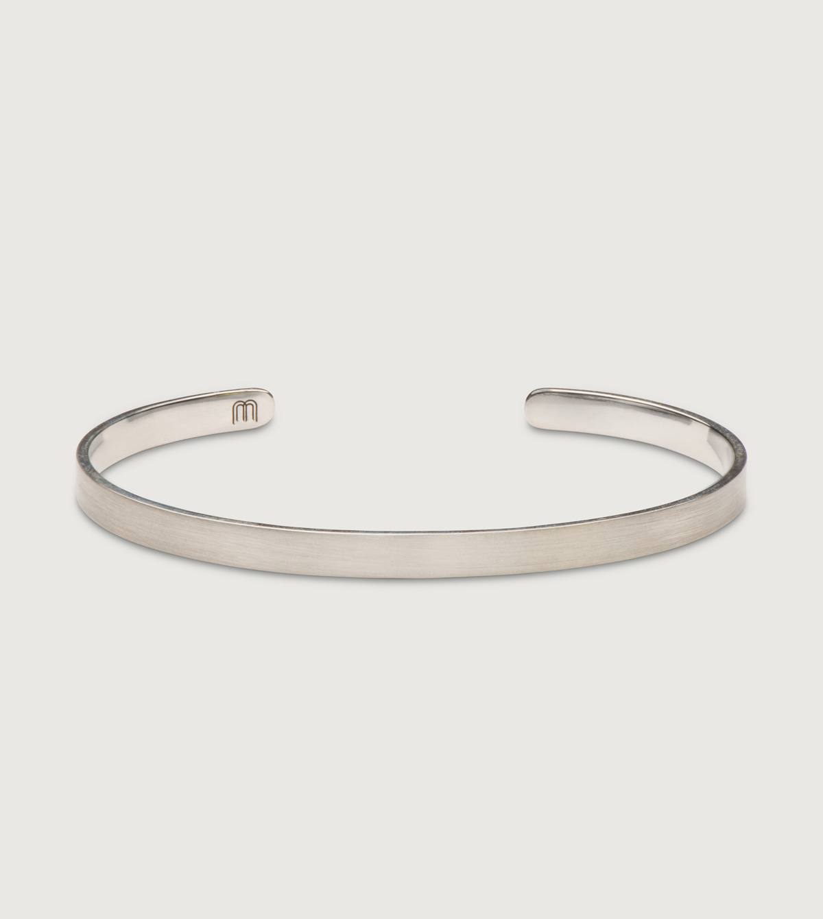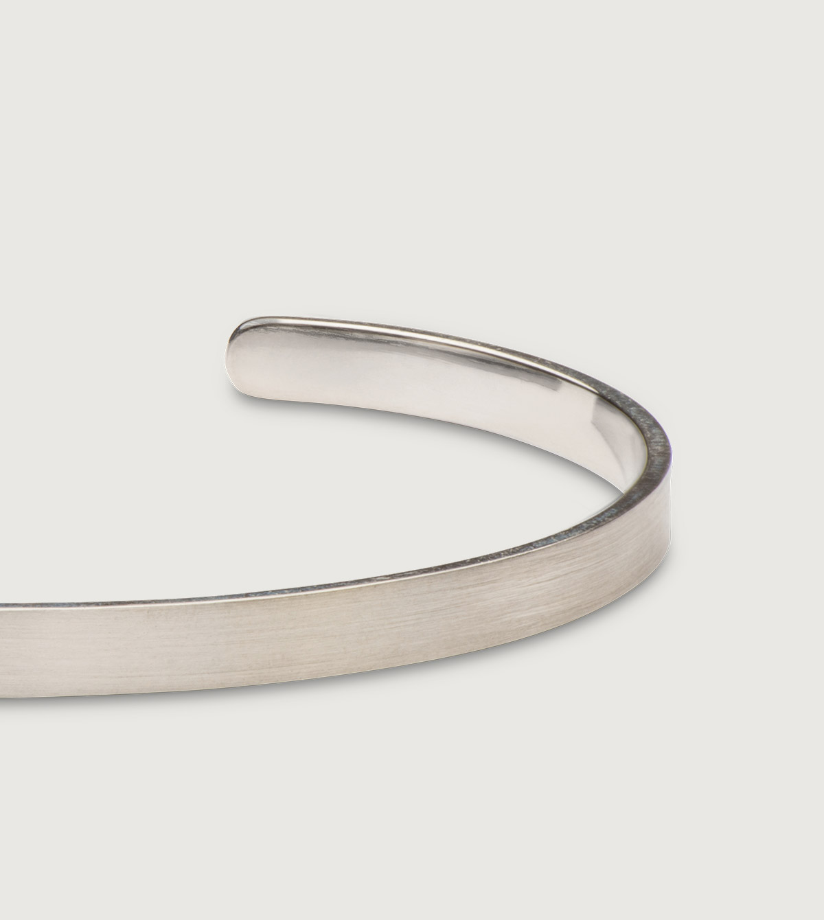 Die mattierte Oberfläche wurde traditionell von Hand gebürstet, wodurch der Armreif einen matten Glanz erhält. Mit ca. 4,5 mm Breite kannst Du ihn einzeln tragen oder stylisch mit anderen Armreifen und Armbändern kombinieren.
