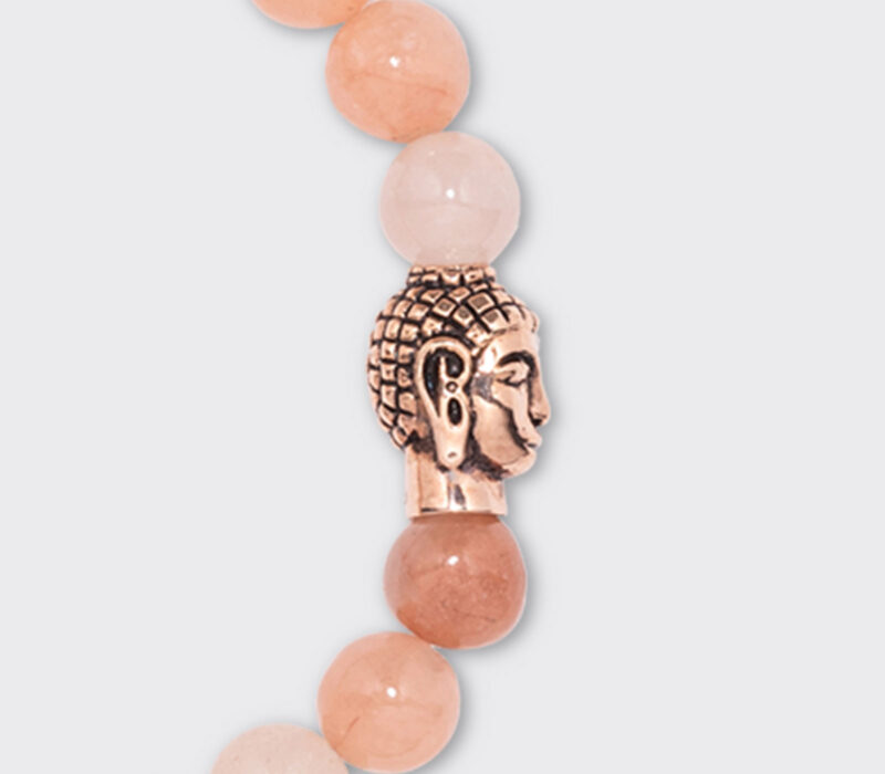 Orangencalcit hat eine leicht durchscheinende Oberfläche, die seine Schönheit nur noch verstärkt. Der natürliche Glanz in Pastell-Orange- und Lachsnuancen wird ergänzt durch leicht milchige Einschlüsse und macht ihn wörtlich zum Eye-Candy. Schon bei den alten Ägypter symbolisiert der farbenfrohe Stein Macht und Reichtum. Orangencalcit fördert durch seine leuchtende Farbe Lebensfreude, stärkt die Selbstachtung und verleiht Selbstvertrauen. Für dieses elegante Damenarmband verwenden wir 8 mm Perlen zusammen mit dem Roségold vergoldeten Silber Buddha, das an Deinem Handgelenk zum edlen Blickfang avanciert.