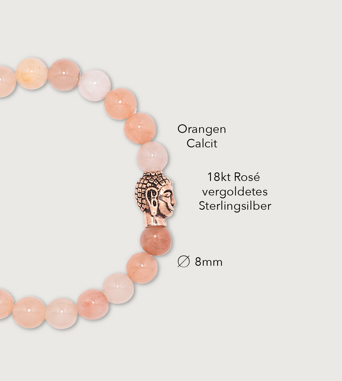 18k Roségold Vermeil Buddha & Orangen Calcit Ø 8mm