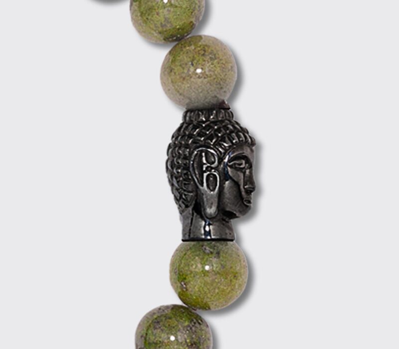 In dieser elegante Kombination aus geschwärztem Buddha mit markanten 10 mm Serpentin Beads strahlt das Buddha Armband durch die kräftige Farbgebung des Serpentin in verschiedenen Grüntönen. Dabei schenkt Serpentin innere Ruhe, ist gut gegen Stress und gleicht Stimmungsschwankungen aus. Dieses Armband verleiht schlichte Eleganz & stilvolle Klarheit – zeitlos schön & passend zu fast jedem Outfit.