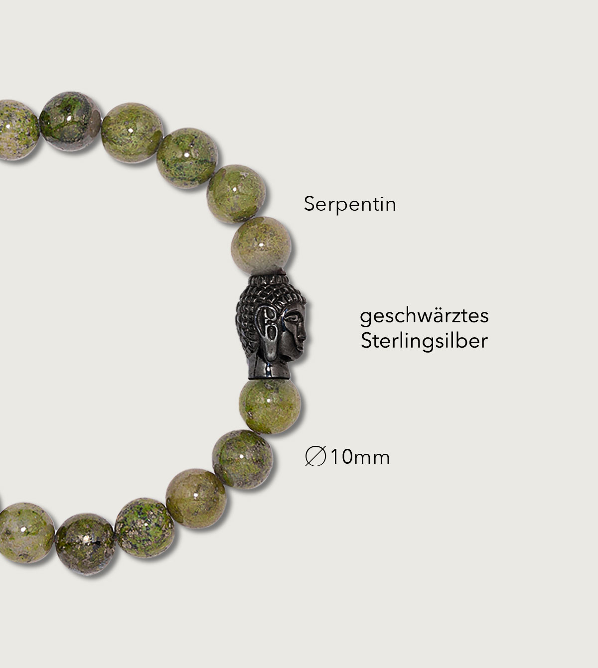 Sterlingsilber Buddha geschwärzt & Serpentin Ø 10mm