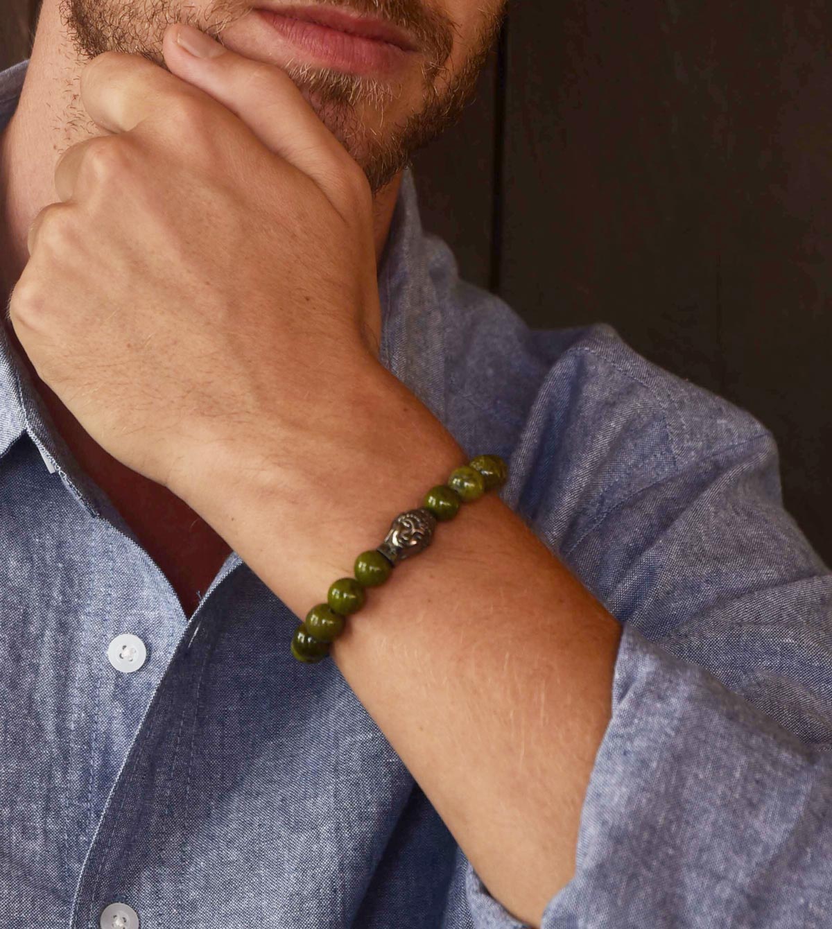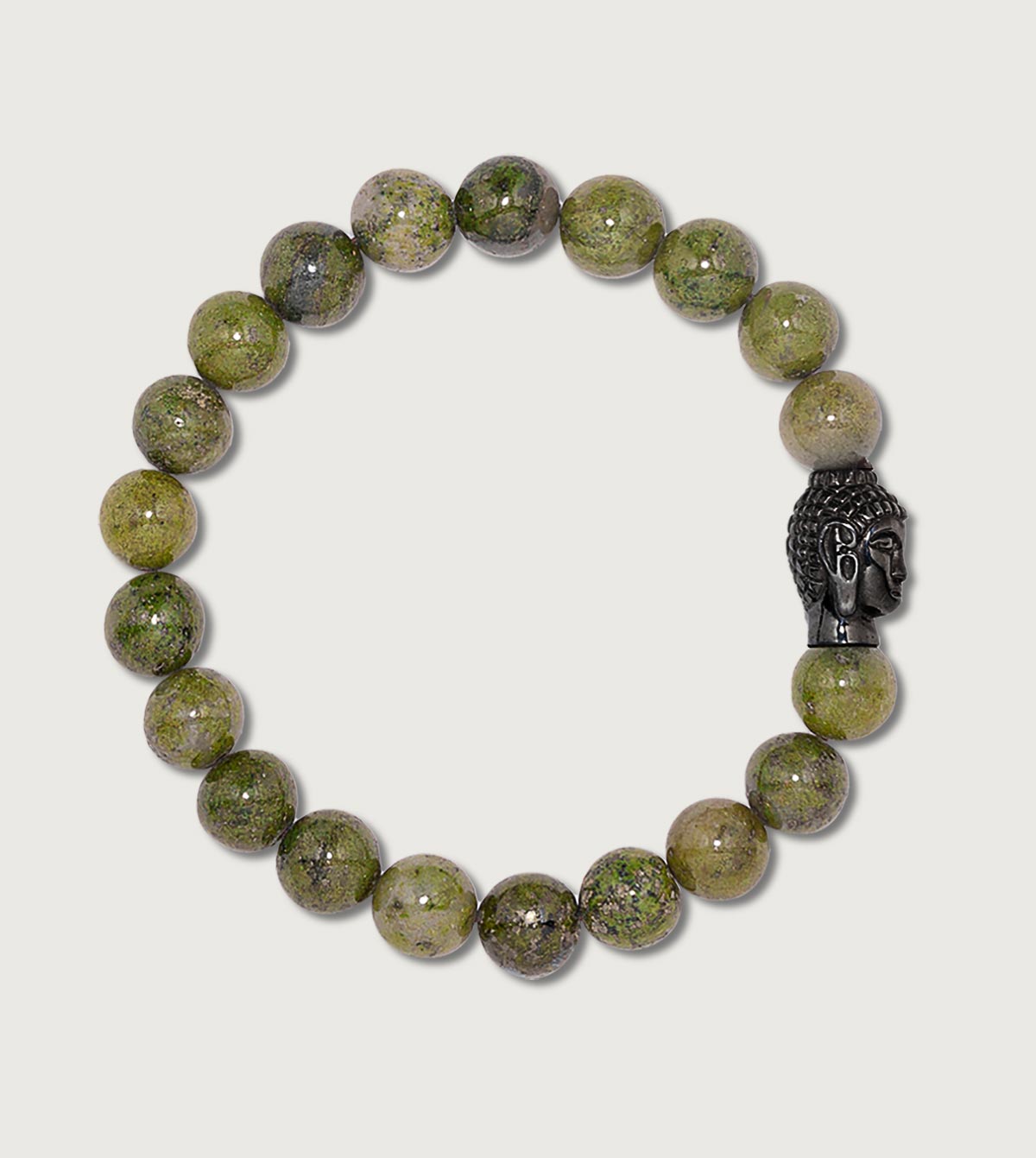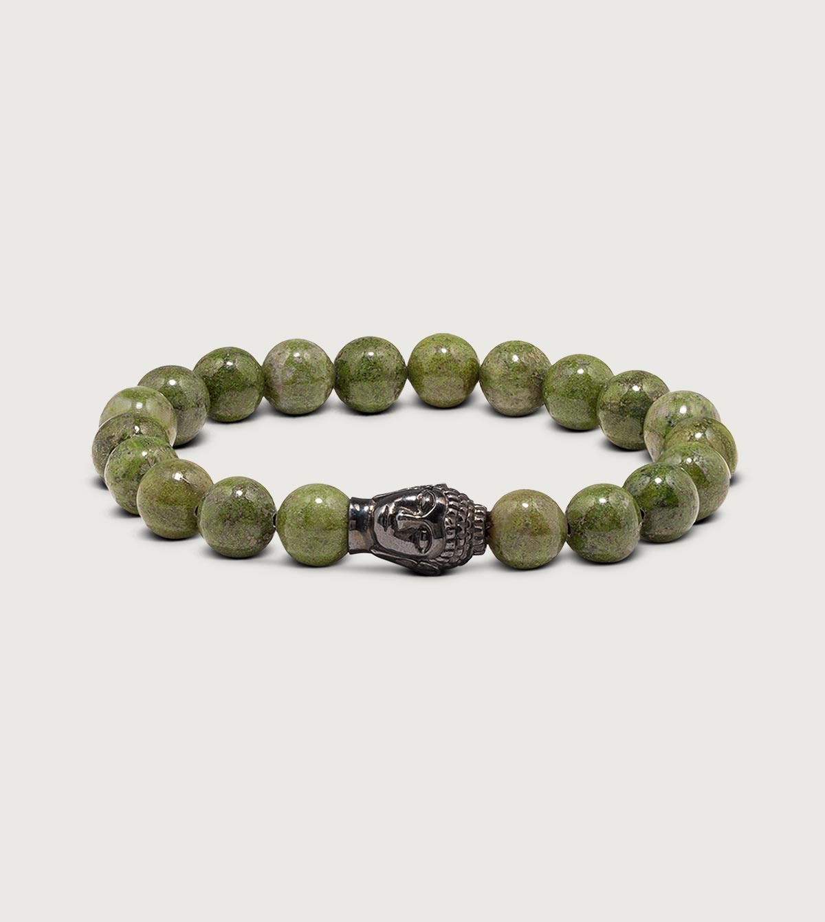 In dieser elegante Kombination aus geschwärztem Buddha mit markanten 10 mm Serpentin Beads strahlt das Buddha Armband durch die kräftige Farbgebung des Serpentin in verschiedenen Grüntönen. Dabei schenkt Serpentin innere Ruhe, ist gut gegen Stress und gleicht Stimmungsschwankungen aus. Dieses Armband verleiht schlichte Eleganz & stilvolle Klarheit - zeitlos schön & passend zu fast jedem Outfit.
