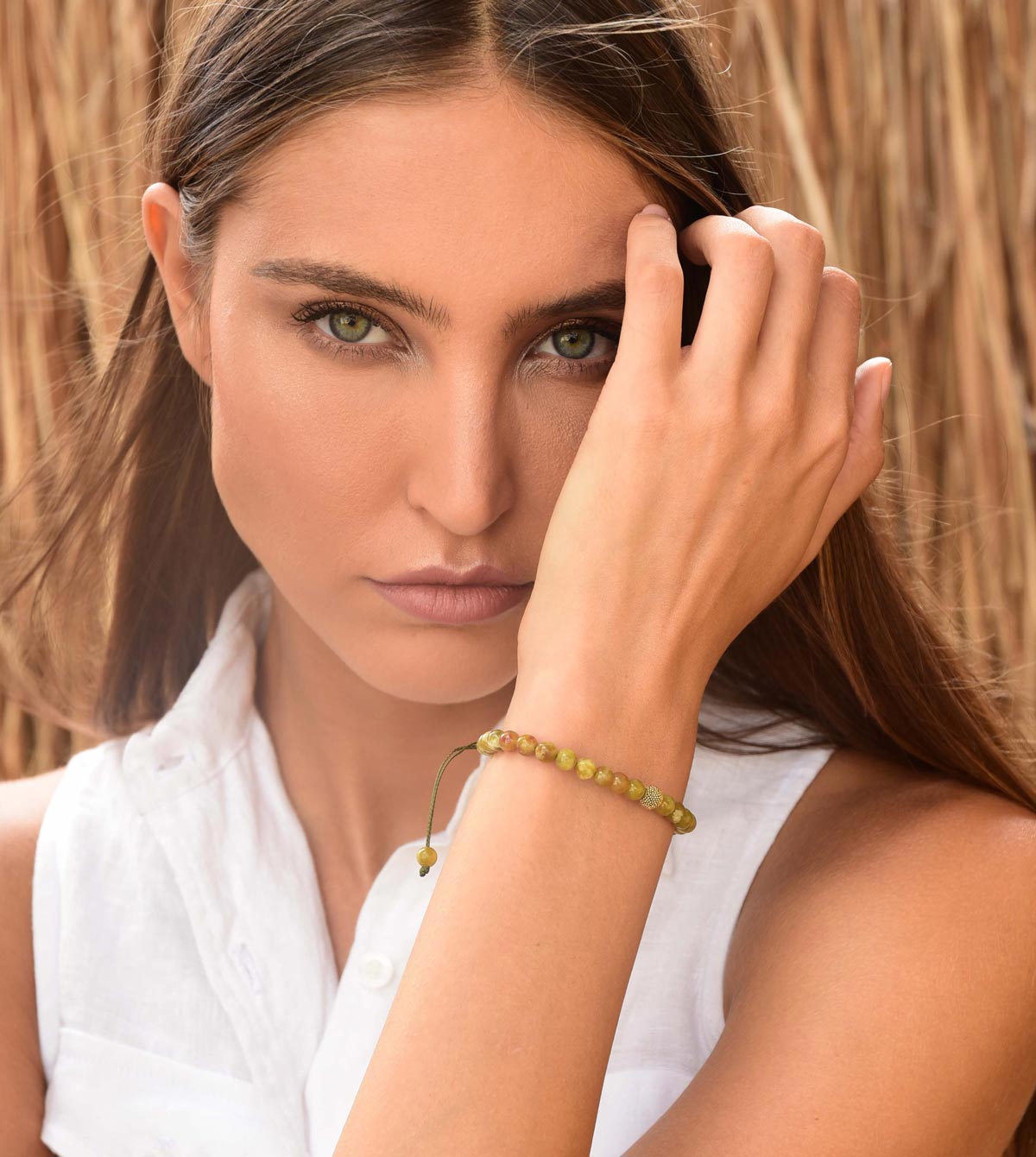 Alle Armbänder werden auf einem Stretchband aufgefädelt und gleiten so mühelos über Deine Hand. Wir empfehlen beim An- und Ablegen das Armband über den Handrücken zu rollen.