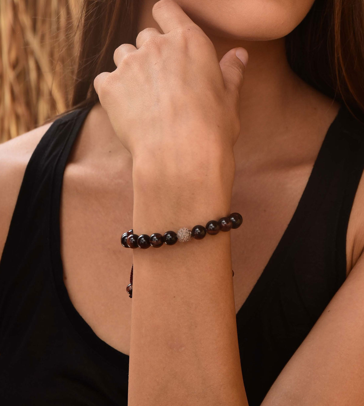 Verleih Deinem Handgelenk Stil & Eleganz mit unserem Armband aus rotem Tigerauge und einer handgefertigten & Silberperle rosé vergoldet. Die einzigartige Maserung verleihen dem Armband einen unverwechselbaren Charakter. Die tiefen, lehmartigen Rottöne, durchzogen von dunkleren Streifen, wirken verspielt und elegant zugleich. Um das Tigerauge perfekt in Szene zu setzen, bildet die Rosé vergoldete Silberperle das dezente Highlight. Ein einfaches und dennoch kraftvolles Armband, mit dem Du Deinem persönlichen Look spielend leicht Ausdruck verleihen kannst.