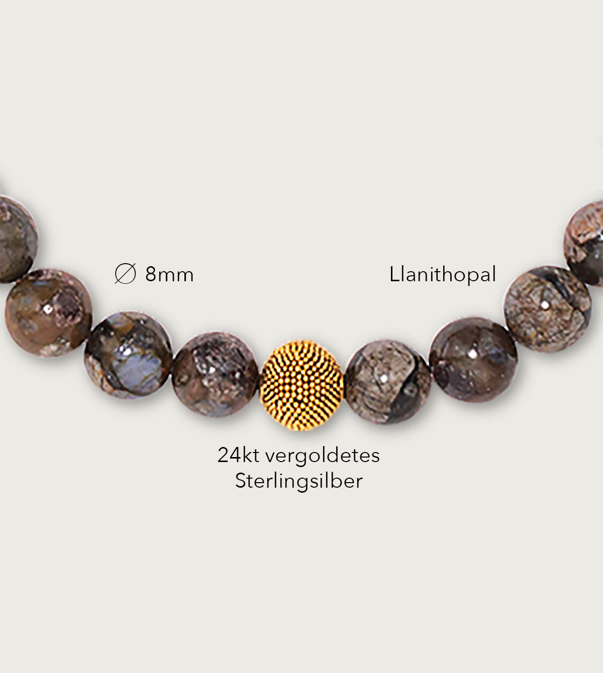 Unser Llanitopal Perlenarmband verkörpert dezent Luxus & Stil für´s Handgelenk. Jede Perle wurde sorgfältig handverlesen und sorgt für ein atemberaubendes Farbspiel. Seine Perlen prägen ein geflecktes Farbspektrum an Braun- und Blautönen sowie leichte rosa Nuancen, die zusammen ein strahlendes Armband erschaffen. Seine einzigartige Farbkomposition, dass alle Farben der Natur aufweisen kann, fasziniert und wirkt wohltuend auf unsere Seele. Es ist mehr als nur ein Schmuckstück – es ist ein Ausdruck Deiner einzigartigen Persönlichkeit und Deines stilsicheren Geschmacks.