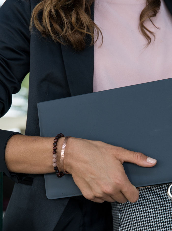 Bei wichtigen Businessmeetings empfiehlt sich daher ein dezentes Design. Armbänder in eher gedeckten Farben signalisieren dezente Eleganz und setzen somit einen unaufdringlichen Akzent am Handgelenk. Du findest bei uns eine große Auswahl geeigneter Edelsteine mit entsprechenden Farbtönen wie Goldobsidian, Labradorit sowie blaues Tigerauge oder die weichen Farbtöne des Mondsteins in Grau und Rosa.
